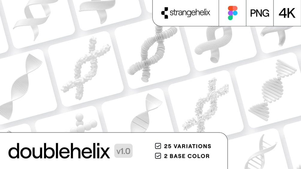 Our 25 abstract 3D DNA renders are designed to bring captivating visuals to your digital projects. Each render is carefully crafted to enhance the visual appeal and seamlessly integrate into various design contexts, from healthcare user interfaces to biotech applications.